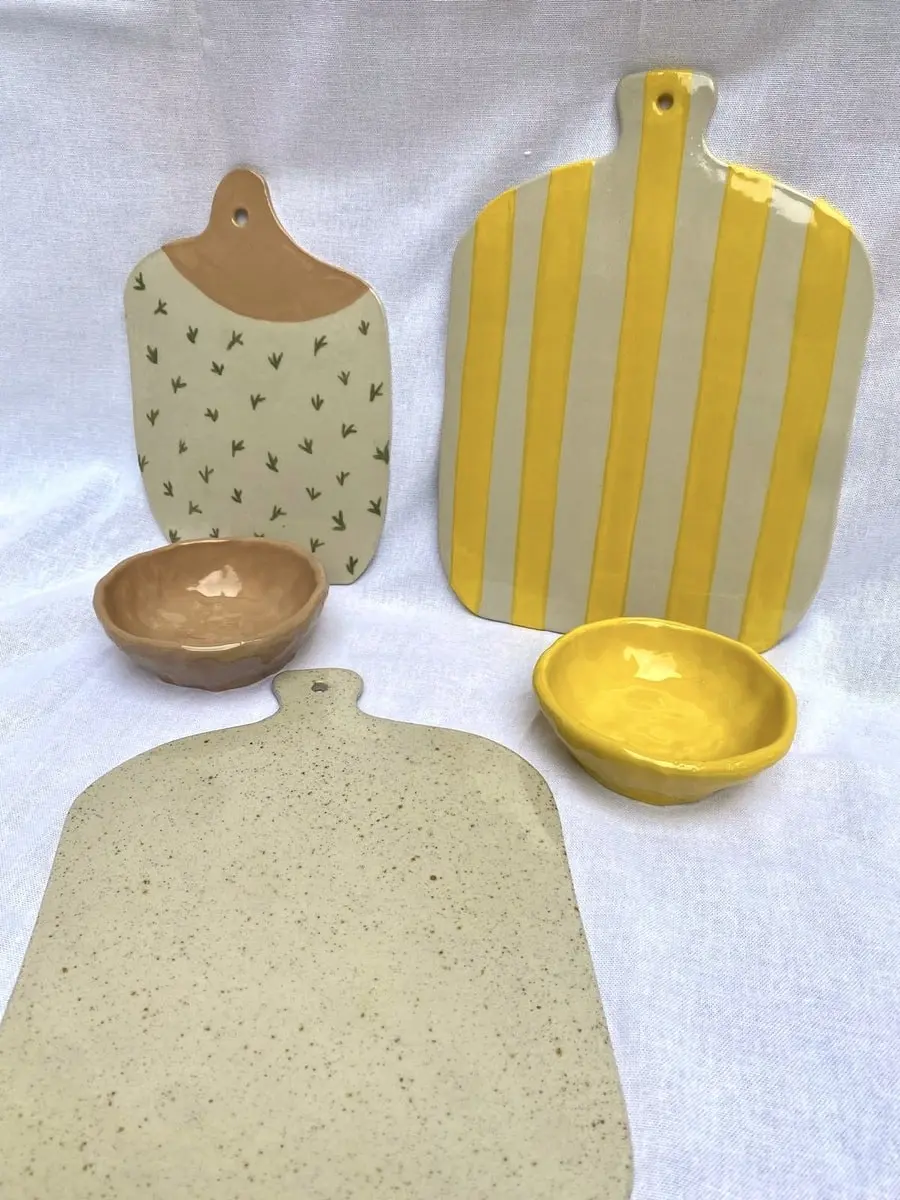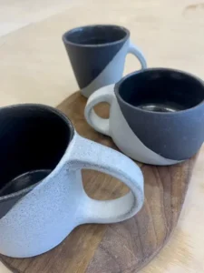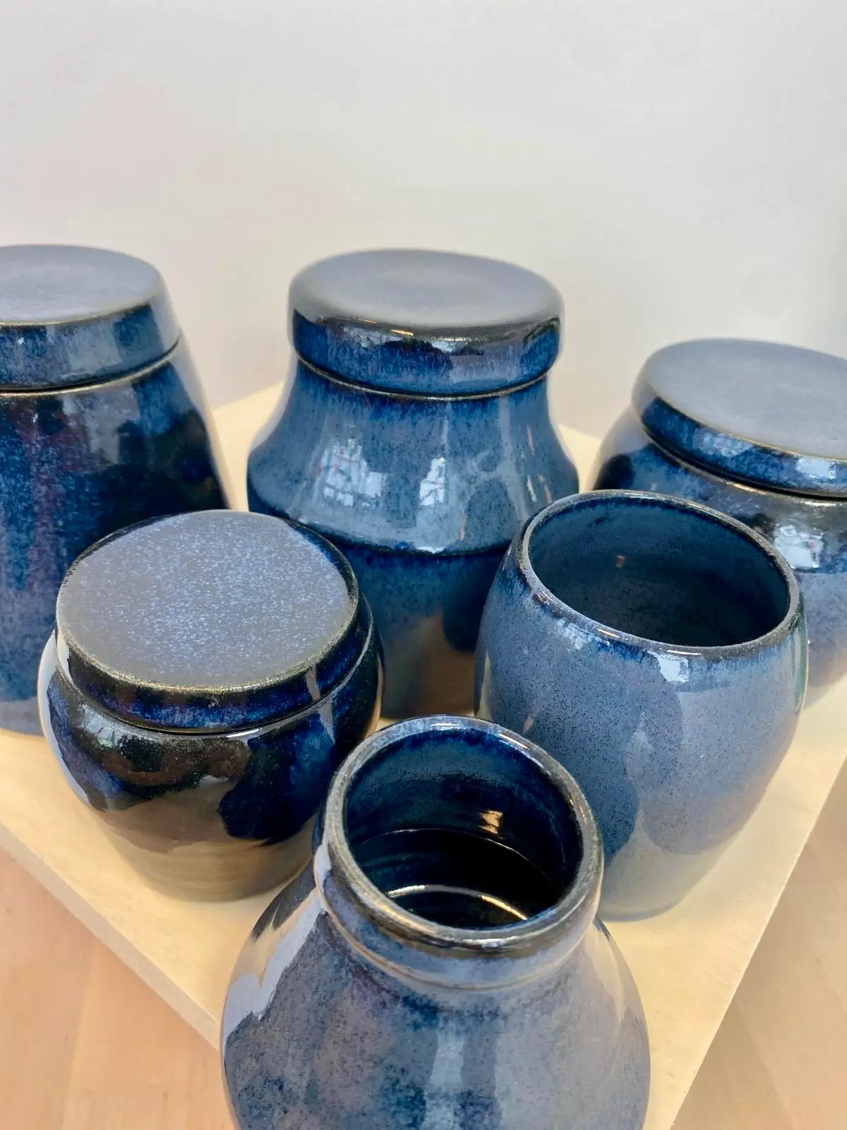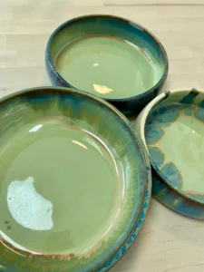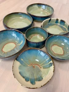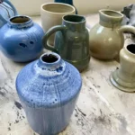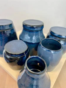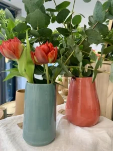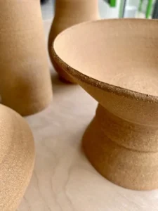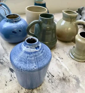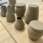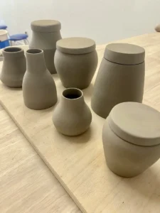 Une sélection de pièces réalisées au fil des mois : tournage, modelage, essais d’émaux et séries en cours.