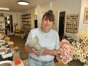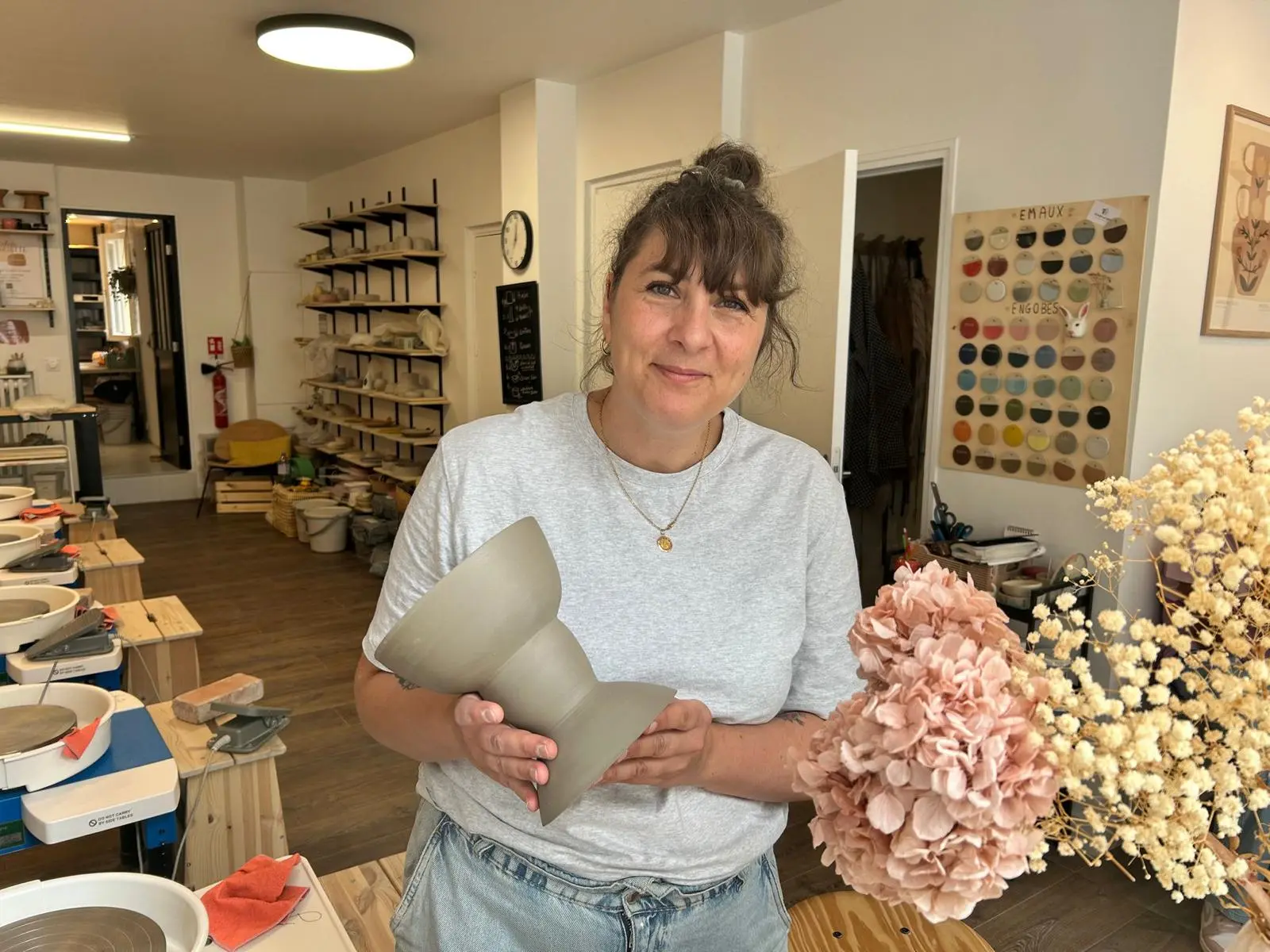 L’atelier dispose d’un espace de tournage, d’un espace modelage et d’une salle d’émaillage.