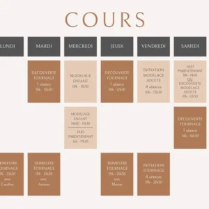 Durant cet atelier ludique de 1h30, les enfants mettent les mains dans la terre pour découvrir, imaginer et fabriquer des petits objets ou figurines en céramique. Pour commencer, une céramiste bienveillante montre les premiers gestes de modelage, puis chacun réalise sa propre création et la décore à sa façon.